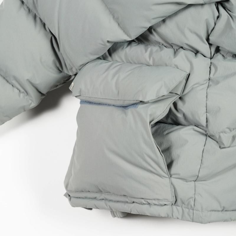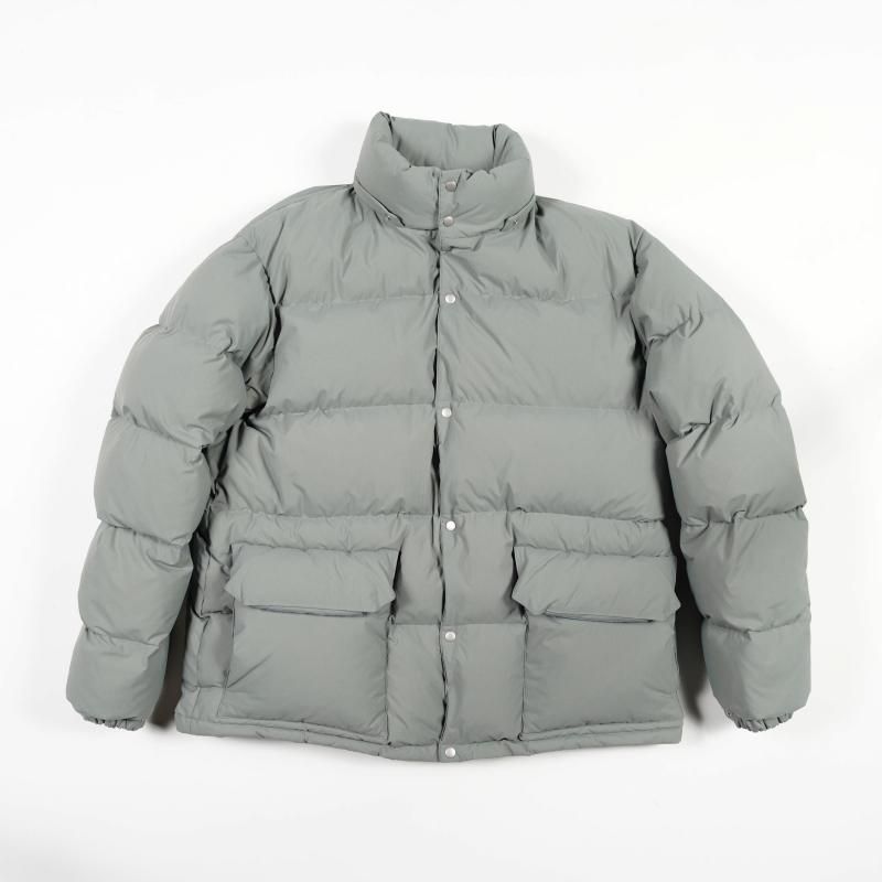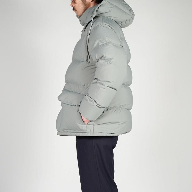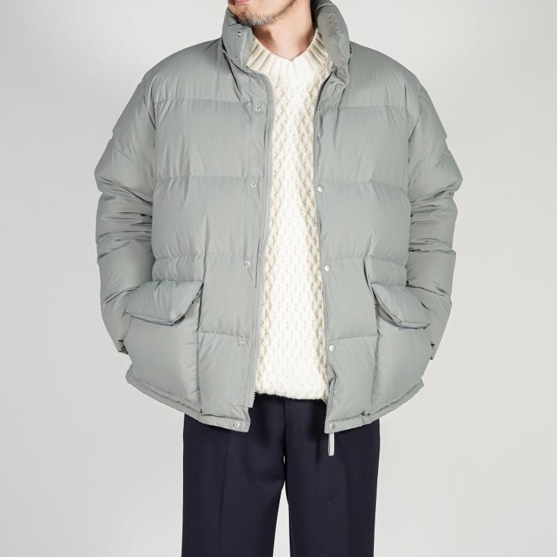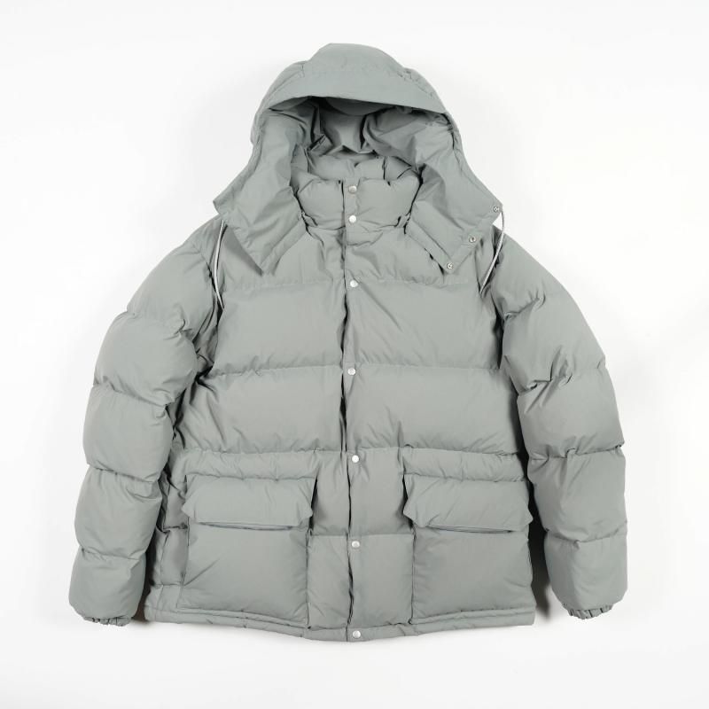 素材には国内繊維メーカーと開発したオリジナルナイロンを採用。ワッシャー加工によるシワ感がコットンライクな風合いを生み出し、独特なドライタッチとレトロな表情をまとわせています。ボリューム感あるフォルムと豊富なダウン量により、寒冷地での機能性はもちろん都市生活にも自然に馴染む、ダウンジャケットが完成しました。