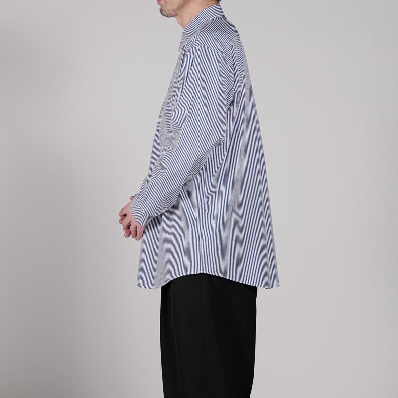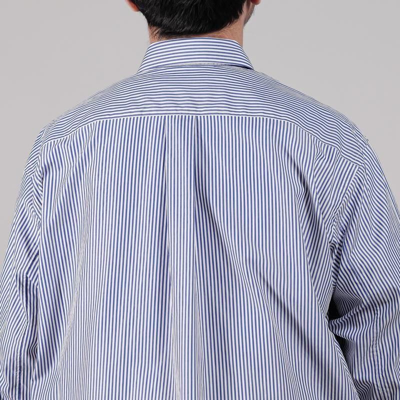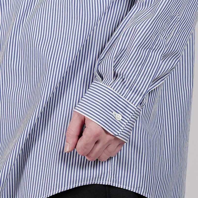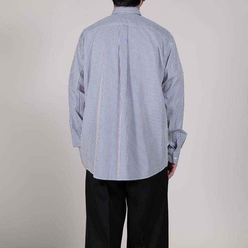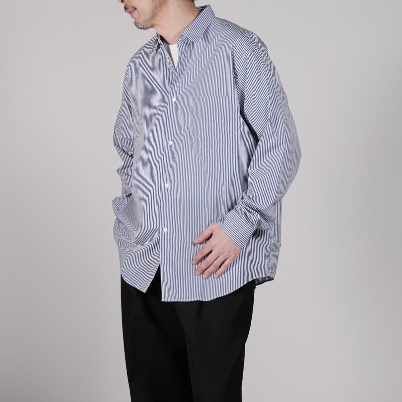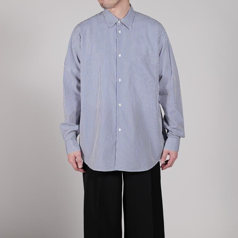 なめらかに整った繊維そのものの光沢感と、均一な撚りにより毛羽立ちにくい超長綿であるスーピマコットン。非常に繊細な糸番手で製織したブロード生地を使用。高級シーツにも使用されている生地で適度なハリと柔らかさがあり着心地が非常に良い。ラインはボックスシルエットでオーセンティックなレギュラーカラー。体型に合わせて&好みのサイズで着こなせるサイズ展開。