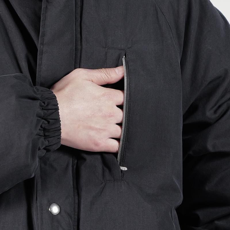 90年代のアウトドアブランドではない、カジュアルブランドが作る ダウンステッチが無いダウンジャケットをベースにアレンジした。ダウンの入れる分量感を各パーツごとに調整し、丸みのあるデザインにしている。
