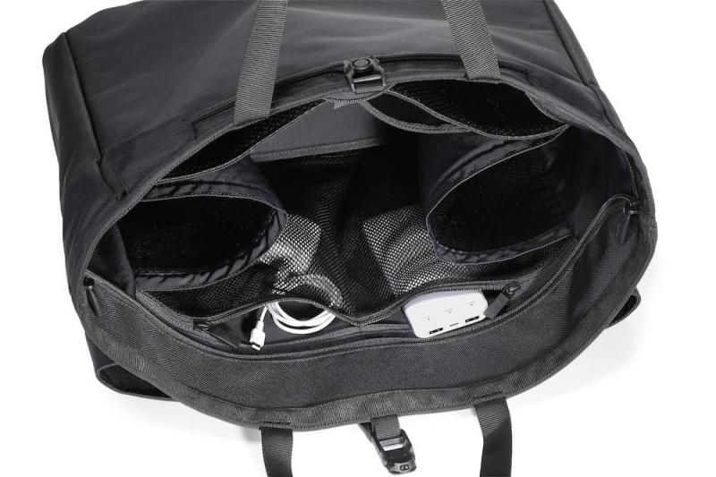 航空機の手荷物検査などでのスムーズでクイックなPCの出し入れが可能なダイレクト構造。16インチクラスのラップトップ(400×280×17mm以内)が収納可能なサイズ。PCポケットの外側にはオーガナイザーを配置。カードケースやメモ帳などの細かなアイテムが収納できる。