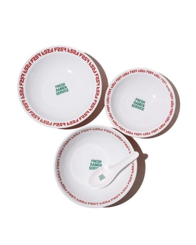 クラシックな雷文を縁に配した、美濃焼のラーメンボウル。手作業で仕上げられているため、釉薬のムラや刷毛跡、色合いの個体差が一点一点に異なる表情を与え、器としての味わいを深めている。使うたびに愛着が増す、そんな佇まいに。外側はヴィヴィッドなレッド、内側には「FRESH RAMEN SERVICE」のロゴをあしらい、懐かしさとユニークさが同居する。