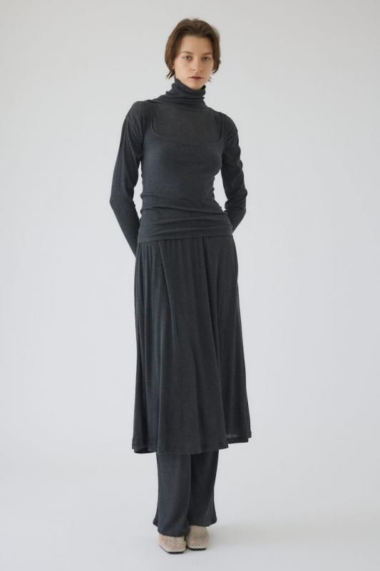タンクトップはデコルテを大胆に開けたデザインになっており、インナーのチュニックを覗かせることで、奥行きのあるレイヤードが完成します。