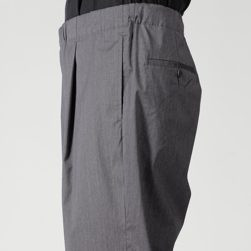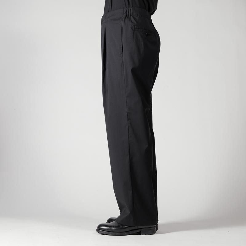 ワンタック配したワイドストレートシルエットとなり、穿く位置によって様々な見え方がし、素材の上品な光沢に加えて、ドレープ感やシワになりにくいのが特徴的です。