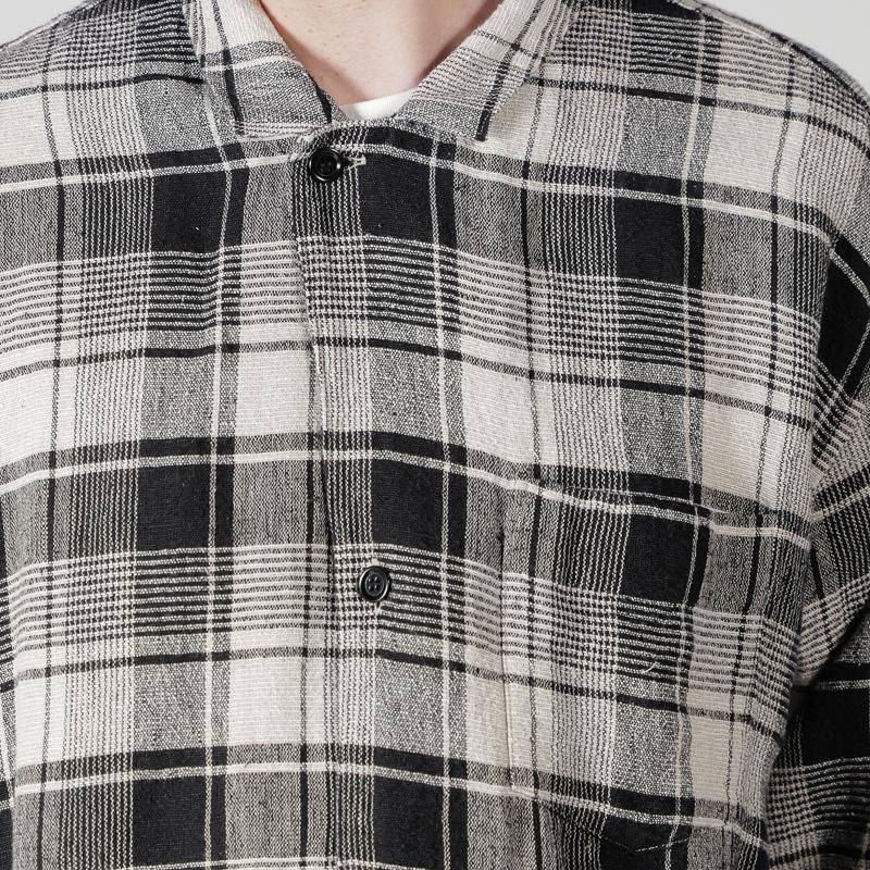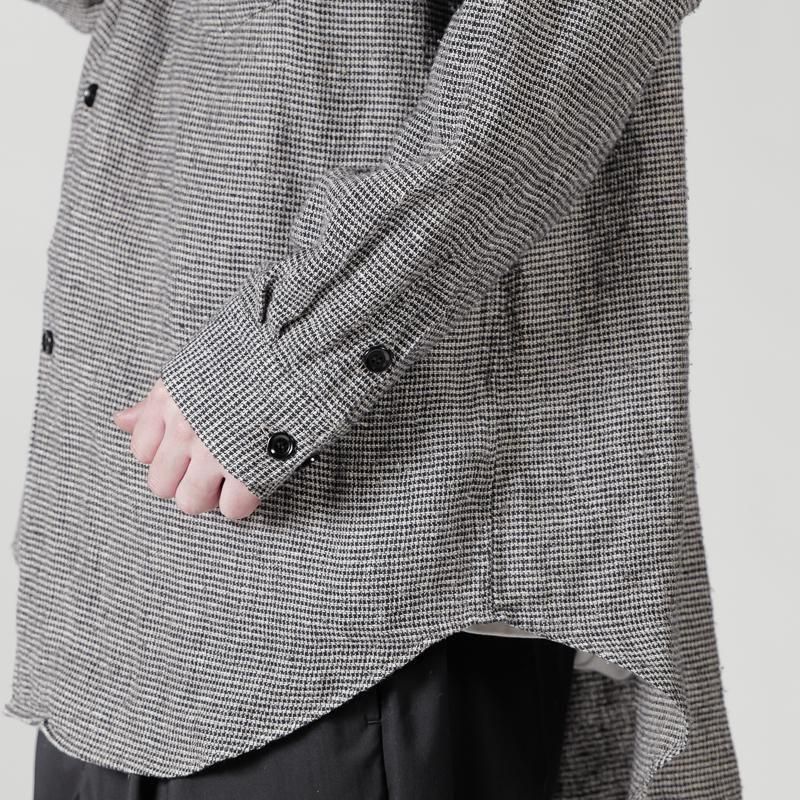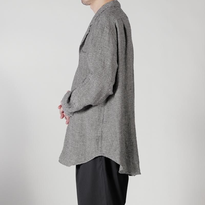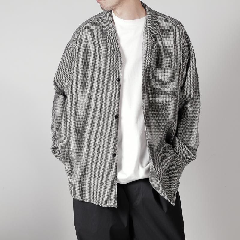 衿のゴージラインや3つボタンのフロントが生み出す端正な雰囲気に、袖はシャツ仕立てとすることで軽快さを兼ね備えています。素材にはコットン、リネン混の上質な生地を採用。