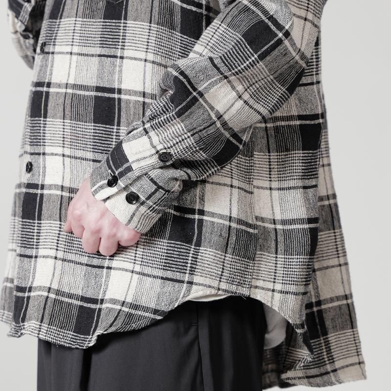テーラードジャケットのディテールを取り入れた〈WEWILL〉のシャツジャケット。